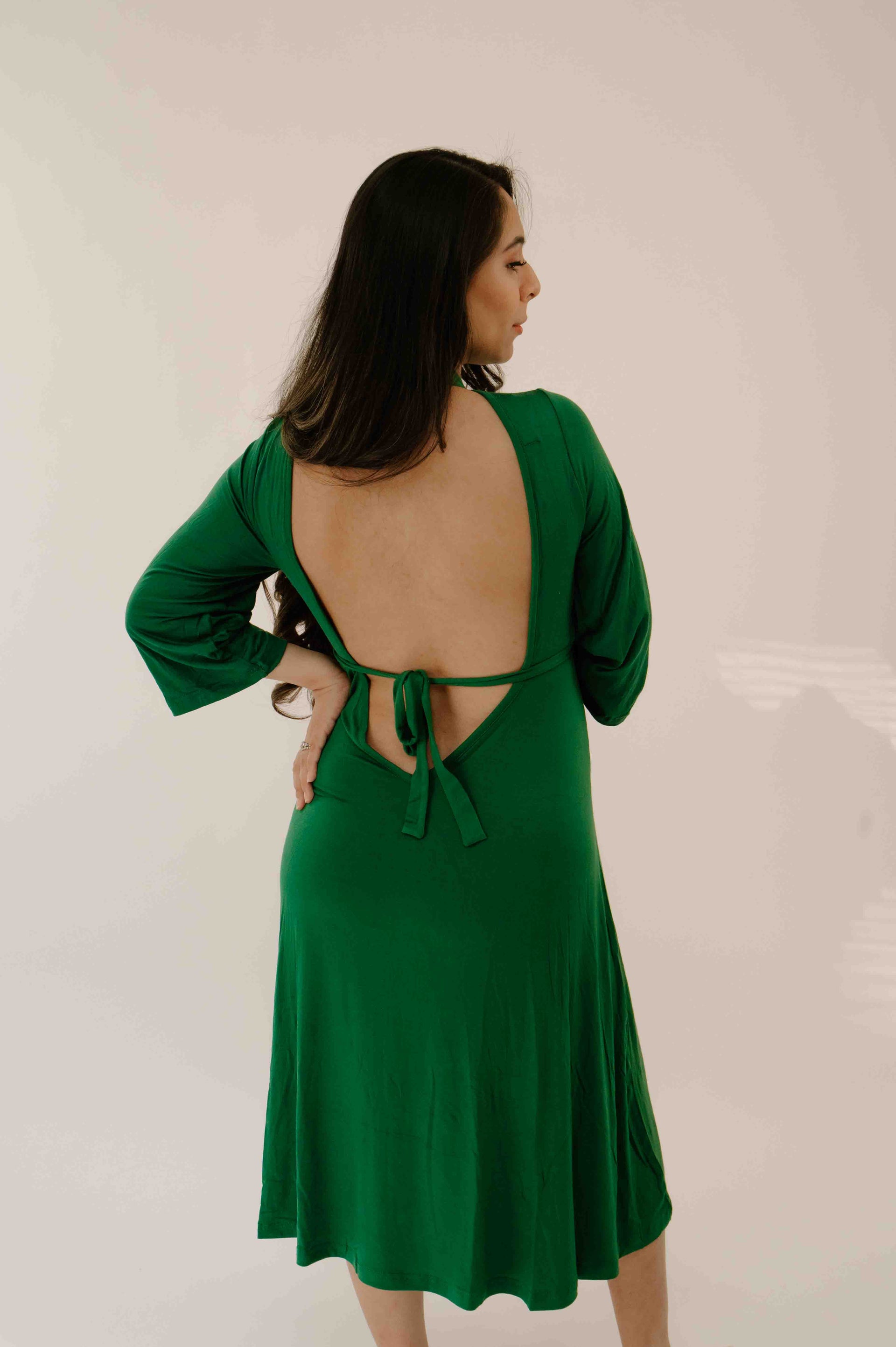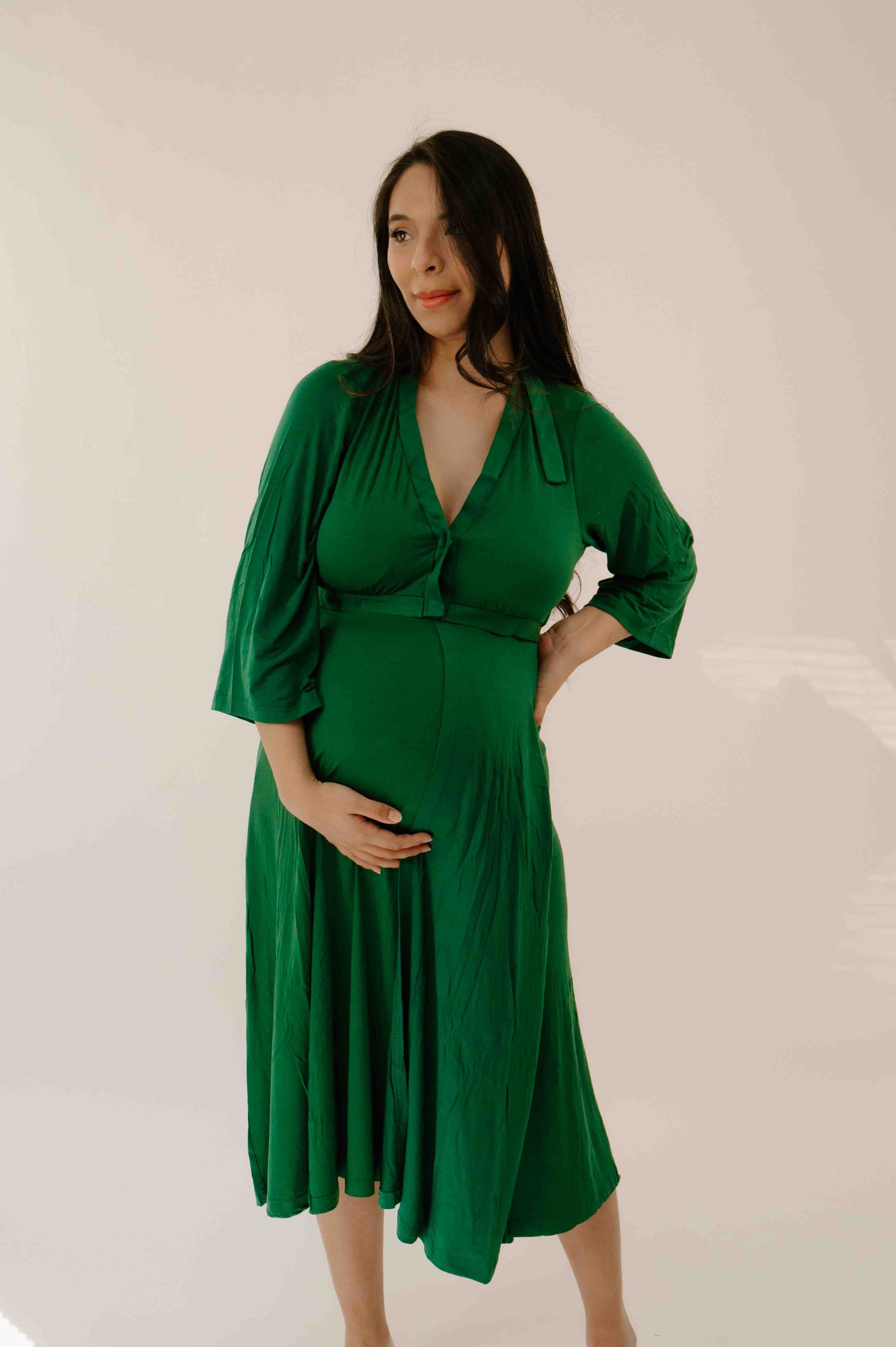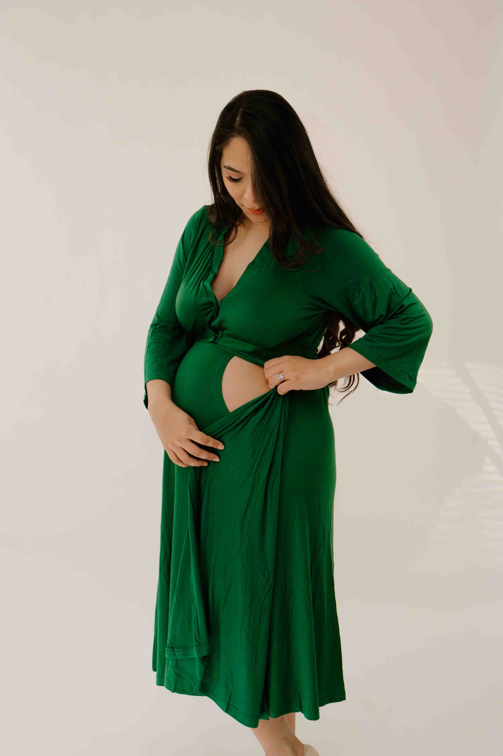 The distinctive design of the Lila Labor Gown is protected by a U.S. design patent. From its functional openings to its elegant silhouette, the gown's appearance is uniquely and officially ours.